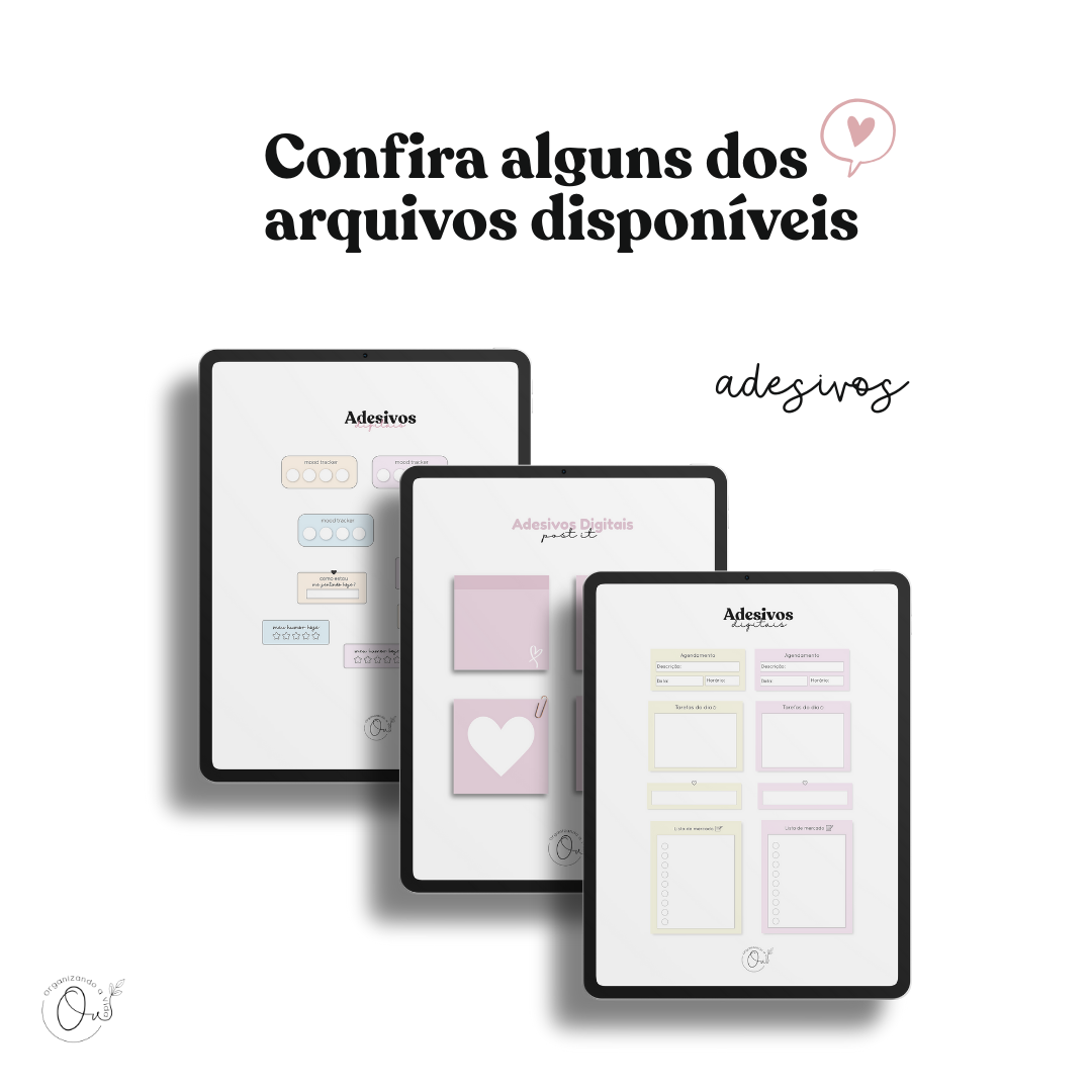 ✔ Adesivos digitais por tema, templates e páginas avulsas