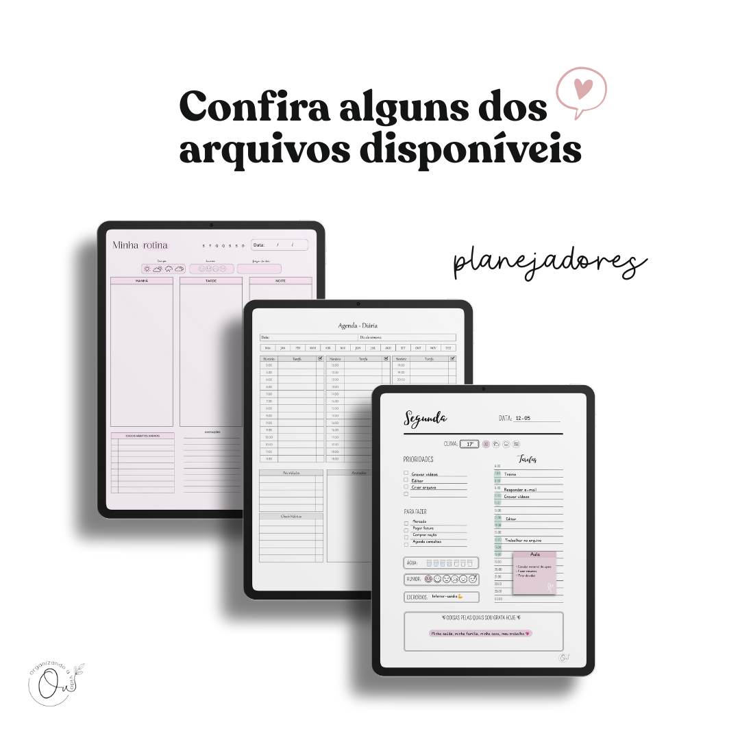 ✔ Organizadores de rotina, capas, checklists e muito mais