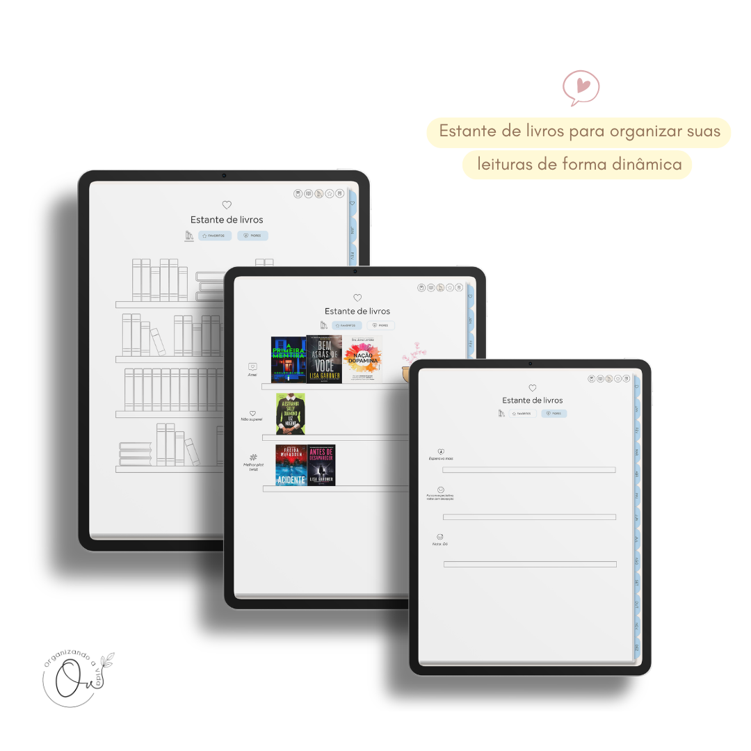 O Planner de Leituras Digital oferece uma variedade de benefícios que ajudam os leitores a organizar melhor suas leituras, estabelecer metas alcançáveis e tornar a experiência de leitura mais envolvente e interativa. Tudo isso de forma simples e digital ♡