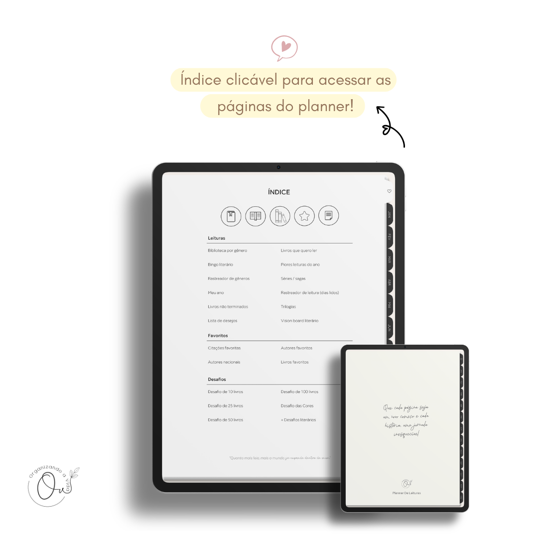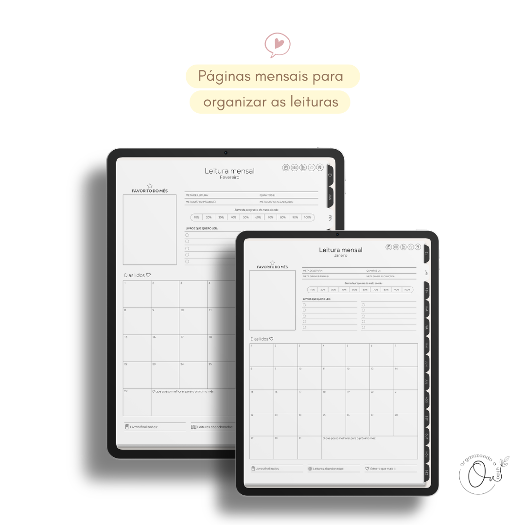 O Planner de Leituras Digital oferece uma variedade de benefícios que ajudam os leitores a organizar melhor suas leituras, estabelecer metas alcançáveis e tornar a experiência de leitura mais envolvente e interativa. Tudo isso de forma simples e digital ♡
